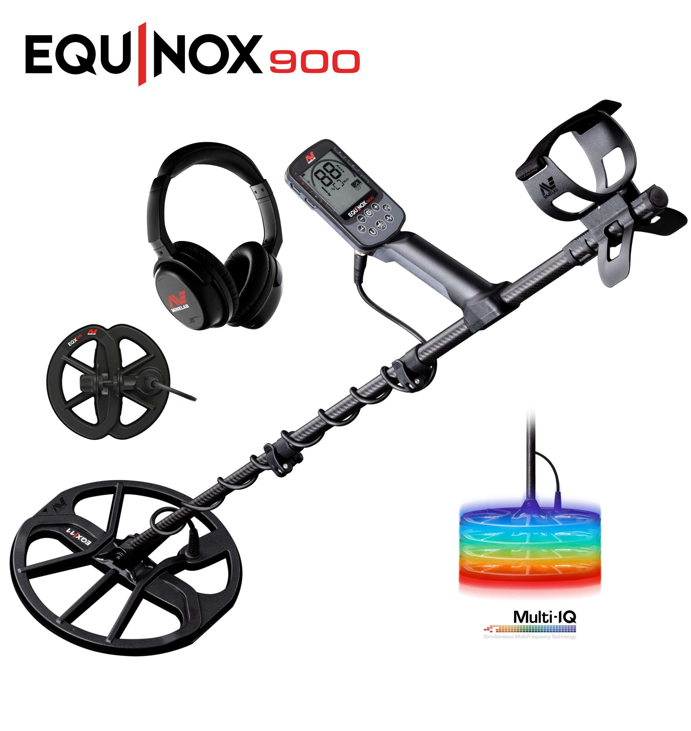 Metal detector EQUINOX 900 con tecnologia Multi-IQ di Minelab, vanta un impressionante sistema di identificazione del bersaglio ad alta risoluzione, una alta capacità di separazione degli obiettivi ed è completamente impermeabile fino a 5 m (16 piedi) con grado di protezione IP68.