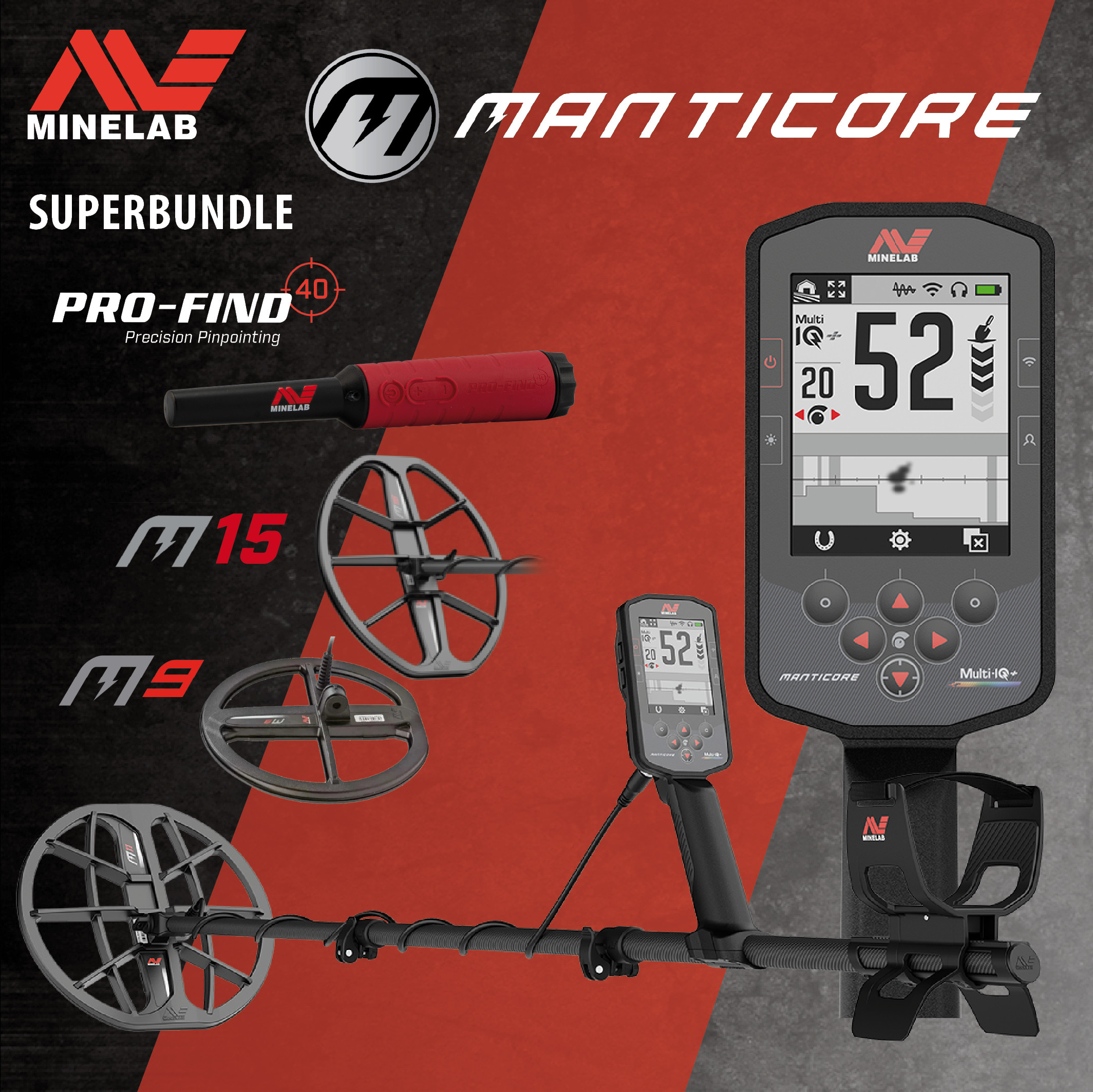 Manticore, il metal detector Minelab più potente di sempre. Con Manticore, trova i target in modo più veloce e più chiaro, anche negli ambienti più difficili.